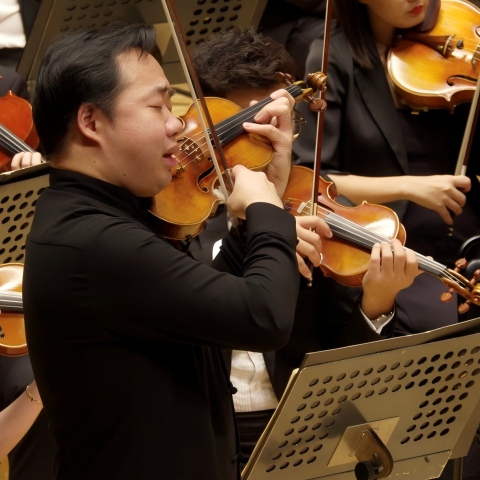 ? ? ? 四位顶尖艺术家的加盟让演出更具看点。马林斯基交响乐团出身、深交荣誉乐团首席洛伦茨·赫尔舒科维奇以国际级的音色把控细节精度,成为整场演出的“艺术压舱石”;深交驻团艺术家篠崎和子精准捕捉中日艺术语境的共通点,促成了不同文化语境下的艺术共鸣;宁峰的小提琴独奏则成为东西方音乐对话的点睛之笔;深交长笛首席张俏以清亮通透的音色穿梭于声部之间,为交响织体注入轻盈质感与呼吸感。艺术家们默契配合、碰撞出奇妙的艺术火花,实现了“1+1+1+1>4”的融合效果,让无国界的艺术语言在音乐厅内流转。正如乐团此行所传递的理念,不仅带来自己的文化,更带着欣赏与理解而来。