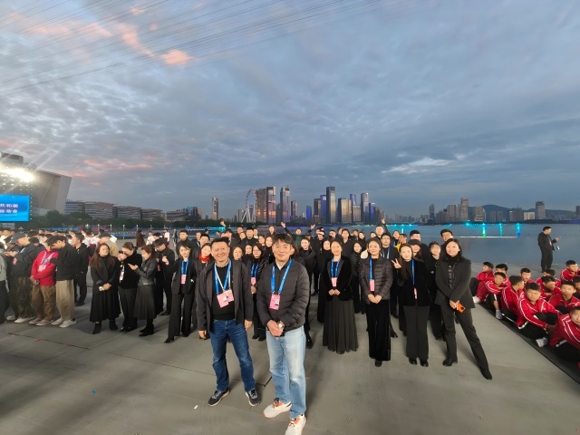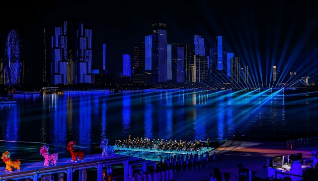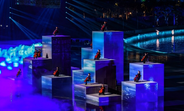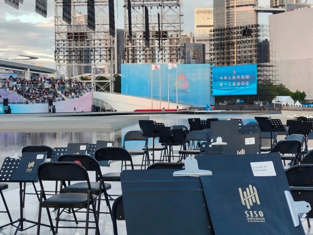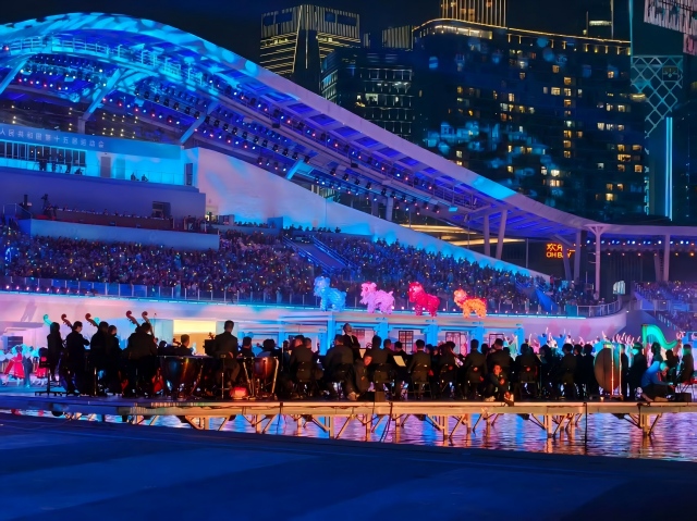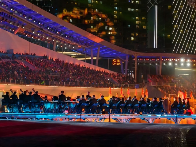 在火炬熄灭环节,7名深交大提琴演奏员与来自中央民族乐团的8名演奏家一道,带来大提琴重奏氛围曲演奏,为这一全国瞩目的庄严时刻赋予了典雅而浪漫的艺术氛围——舞台上,璀璨夜色与海面淋漓波光相映,现代化的城市夜景与管弦乐交融,共同为这场近半个月的文体盛宴画上圆满句号。