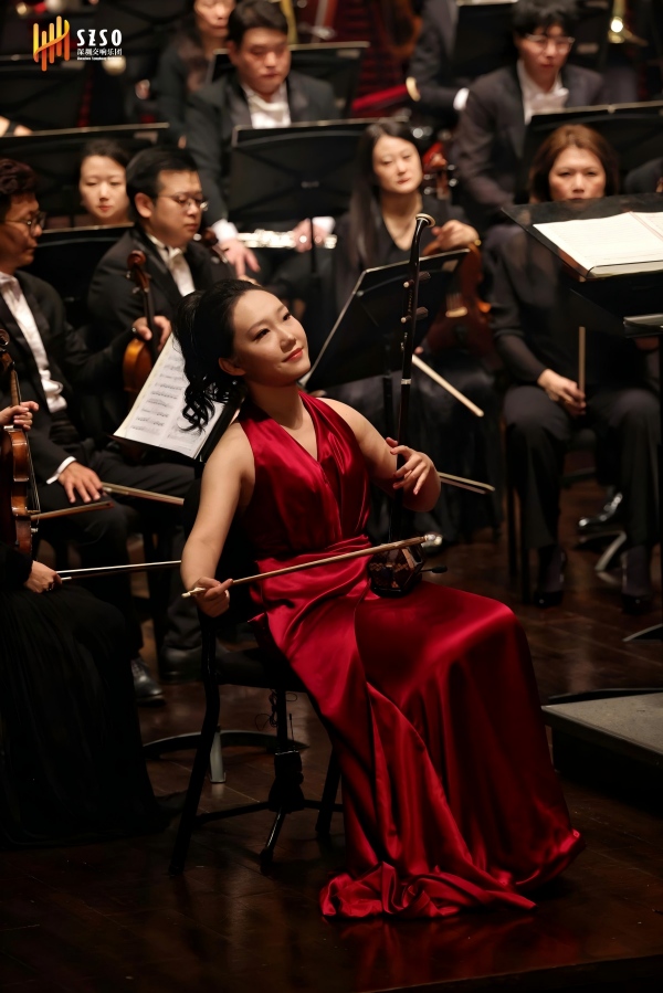 当青年二胡演奏家高白携琴登场,奏响《我的祖国》的那一刻,我听见了邻座观众轻微的吸气声。这位身兼作曲家身份的二胡博士,对乐队与独奏的关系有着天然的敏感。刘炽原曲中那条“一条大河”,在王丹红的编配中,二胡的加入让这份乡愁变得更加私人化。高白的演奏极具分寸感:在“风吹稻花香两岸”的抒情段落,她的运弓绵长而温暖,音色纯净如丝绸,将旋律的歌唱性发挥到极致;而在副歌部分,当乐队全奏排山倒海般涌来,她的二胡以略带嘶哑的高音穿透而出,那声音里有克制不住的颤抖,却绝不溃散——仿佛个体的心声与时代的洪流在此交汇,个人的乡愁与民族的记忆融为一体。
