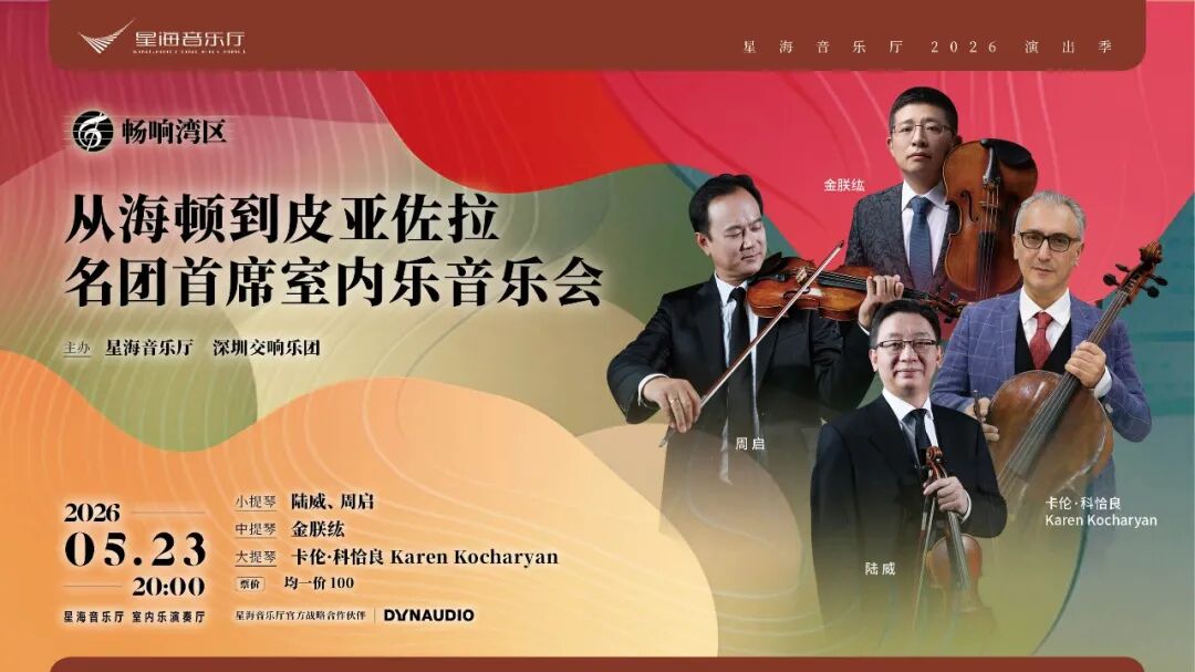 四位坐镇一流交响乐团的声部首席,将以独奏家级的精湛技艺与心灵默契,联袂呈现弦乐四重奏的极致魅力,将那些曾享誉世界的辉煌带回星海音乐厅这个舞台。
