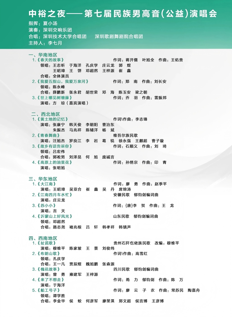 这是一场纯粹的民族声乐盛宴,更是一场凝聚爱心的公益之约。顶级男高音歌唱家齐聚,用最动人的民族唱腔,演绎经典、唱响初心;每一段旋律,都承载着对民族文化的坚守;每一次发声,都汇聚着助力公益的热忱。今晚,让我们在歌声里共情,在美好中同行,共赴这场爱与艺术的双向奔赴。