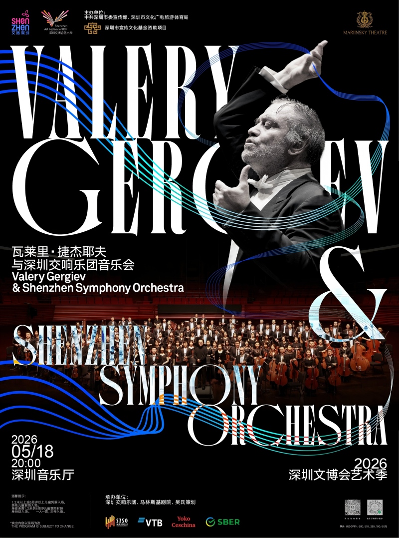 2026年5月18日晚20:00,深圳音乐厅二楼演奏大厅,当今乐坛极具号召力的“指挥沙皇”——瓦莱里·捷杰耶夫,将首度携手深圳交响乐团,并特邀传奇乐团首席洛伦茨·纳斯图里卡-赫尔舒科维奇联袂登台,为乐迷呈献一场兼具东方华彩与德奥巍峨气象的视听盛宴。